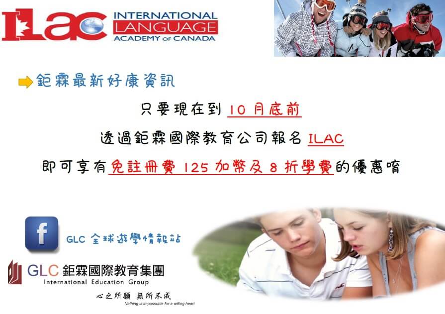 好康的來囉 ! GLC 鉅霖國際教育公司推出加拿大最佳語言學校 ILAC 優惠方案